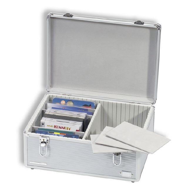 Dieser Aluminiumkoffer CARGO MULTI XL bietet Ihnen eine komfortable und sichere Aufbewahrung für ca. 100 Münzensätze. Die variable Inneneinteilung bietet Platz für Blister, Etuis oder Karten bis zu einer Höhe von 155 mm und einer Breite von 370 mm. Weitere Merkmale: Ergonomischer Tragegriff, 2 stabile, abschließbare Riegel, Beschriftungsfenster. Auch für CDs, Postkarten und Einsteckkarten geeignet. Außenformat: 400 x 295 x 195 mm.