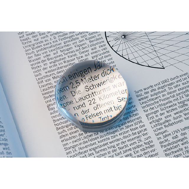 Leselupe kugelförmig, mit 3-facher Vergrösserung