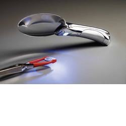 Metall-Leuchtlupe mit hochwertiger Acryllinse und ergonomischem Handgriff in modernem Design. V...